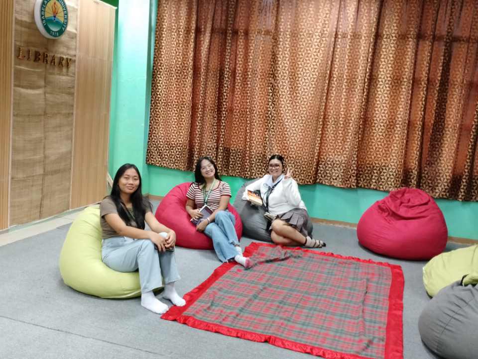 Located inside the main library, the area offers a quiet and calming atmosphere where students can settle down, stretch out, or simply take a moment to breathe. Many students have already begun using the space, finding it helpful during long study sessions. Photos attached to this article show several library users enjoying the bean bags—reading, resting, or quietly reviewing their notes.